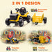 The AIYAPLAY kids ride-on tractor is for adventurous children, offering new levels of fun and excitement. With the detachable trailer, kids can transport toys, sand or leaves, pretending to be farmers or builders. It moves at a steady speed of 3-5 km/h, allowing kids to drive themselves or enjoy a guided ride with the remote control. Powered by a 12V battery, it provides up to 60 minutes of joy on a full charge.