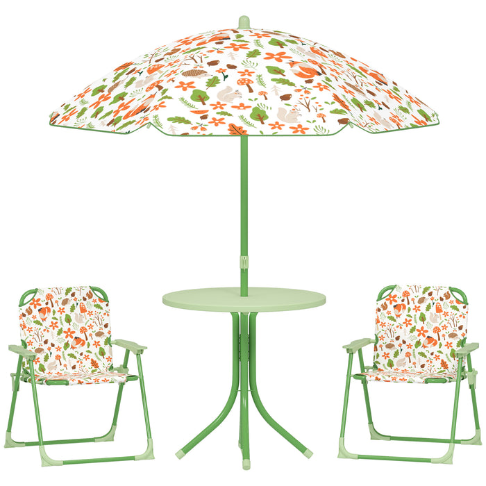 - Convenient & portable: Easy to fold and store, this kid's patio set with umbrella is suitable for families on the go. The folding chairs, collapsible table and removable parasol are lightweight and compact, making it simple to transport.