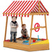 Set boat on a garden adventure with the AIYAPLAY Boat-Style children's sandpit! This unique wooden sandpit is shaped like a boat, complete with a rudder and deck for imaginative seafaring play. A weather-resistant cover shields little sailors from the sun, while the bottom-liner keeps sand tidy and bugs at bay. Suitable for any young captain and crew!