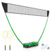 Colour: Blue, Green Material: PE, Metal Item weight: 4.5 kg Weight Capacity: 80 kg Overall Dimension: 270 x 33.5 x 160 cm (L x W x H) Badminton Dimension: 6.5 x 6.5 x 8 cm (L x W x H) Dimension: 66 x 20.5 cm (L x W) Storage Box Dimension: 74 x 33.5 x 13.5 cm (L x W x H) Package includes: 1 X Badminton Net Stand 2 X Badminton Rackets 2 X Shuttlecock 2 X Poles 1 X Storage Box 1 X Instruction Manual