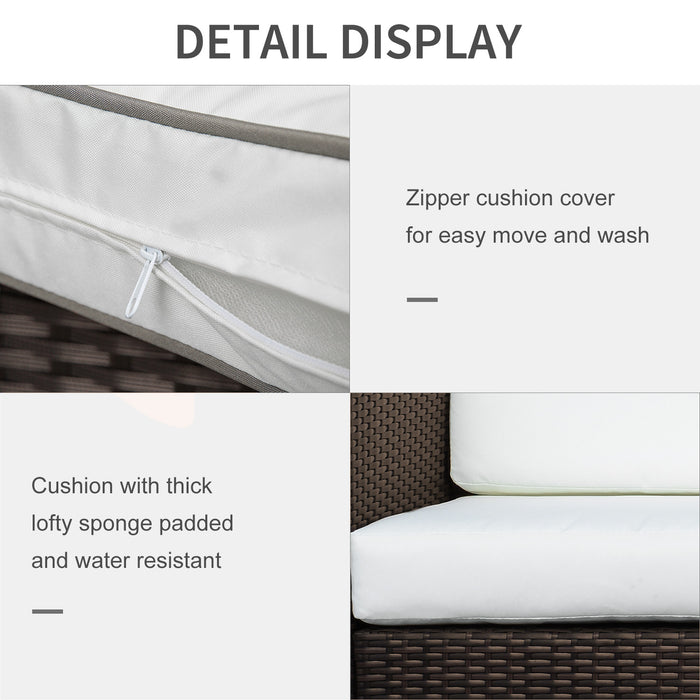 Color Scheme: The alluring rattan is presented in a timeless brown, perfectly complemented by cream white cushions. The materials used in construct include a persevering metal structure, premium PE Rattan, and resilient polyester for the cushion fabric, which together offer an immaculate blend of style and utility for your outdoor living experience.