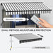 The awning's retractable canopy boasts a flexible tilt range of 45-85°, enabling you to set the perfect angle for maximum comfort. At the recommended setting of 80°, you'll enjoy optimal protection from the elements throughout the day.