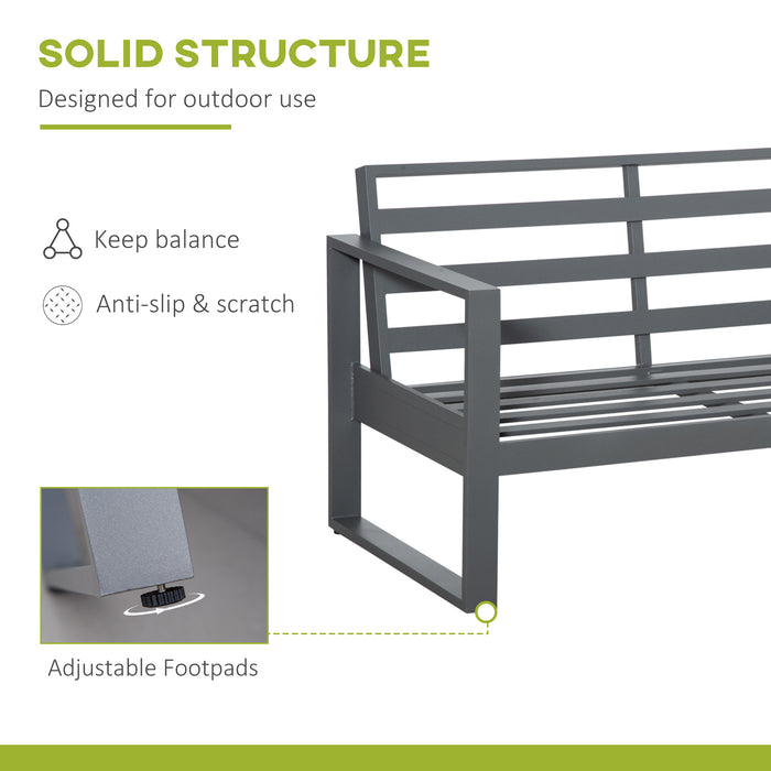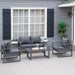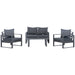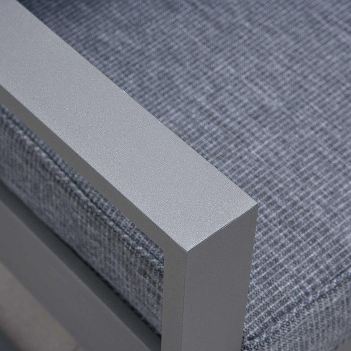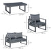 This four-piece outdoor lounge set embodies a blend of luxury and durability. With high-quality Olefin fabric and strategically designed angles for back support, the set provides the quintessence of relaxation. The sleek table is crowned with tempered glass, and every piece supported by a rust-resistant aluminium frame. Neutral dark grey tones ensure the set harmonizes with any outdoor environment.