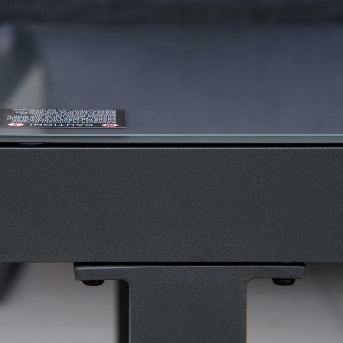 Anchoring the set is our elegantly crafted table with a tempered glass surface, combining strength with sophistication. Maintenance is a breeze—the smooth tabletop can be swiftly wiped clean, ensuring a pristine surface for your entertainment essentials.