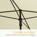 Our parasol's design incorporates four robust 'U' shaped ribs that seamlessly connect the pole to the canopy, fortifying the architecture of the shade. This thoughtful engineering translates to unwavering support and a serene outdoor experience, no matter the conditions.