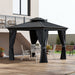 3 x 3.7m Aluminum Hardtop Gazebo - Two-Tier Vented Roof & Mesh Netting Sidewalls, Dark Grey - Ideal Outdoor Shelter for Patio Entertainment
