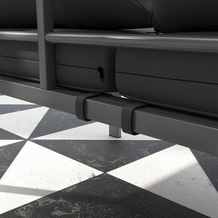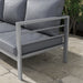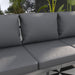 The sofa boasts a robust aluminium frame, meticulously engineered to support and endure the test of time and weather, ensuring a stable and secure seating experience for all.