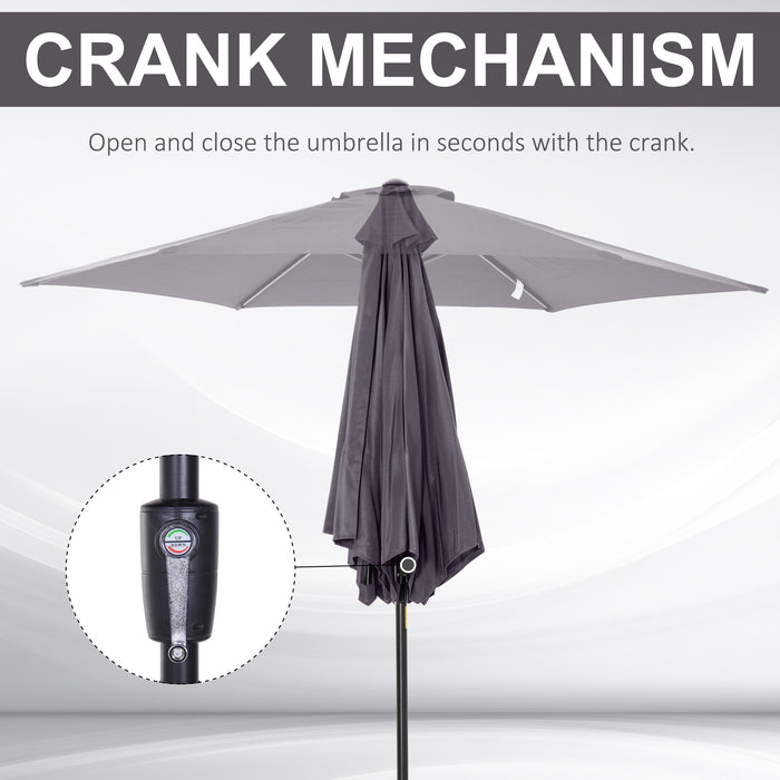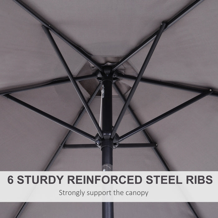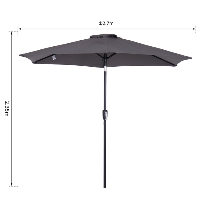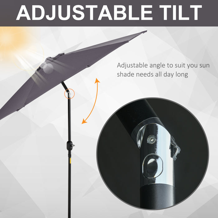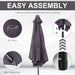 The expansive canopy, spanning 2.6 meters in diameter, offers generous shading capable of comfortably sheltering a seating area of 4 to 6 chairs. Its sleek grey polyester fabric not only adds a touch of elegance but also offers enduring protection from the sun's rays, making it perfect for any garden, backyard, or deck setting.