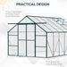 Navigate your horticultural haven with ease using the double sliding doors, elegantly crafted for hassle-free entry and exit. Adjust the atmosphere with our five-position ventilating windows, allowing your plants to enjoy a breath of fresh air whenever necessary. Plus, the thoughtfully designed built-in gutters channel away rainwater, ensuring no water stagnation on the roof.