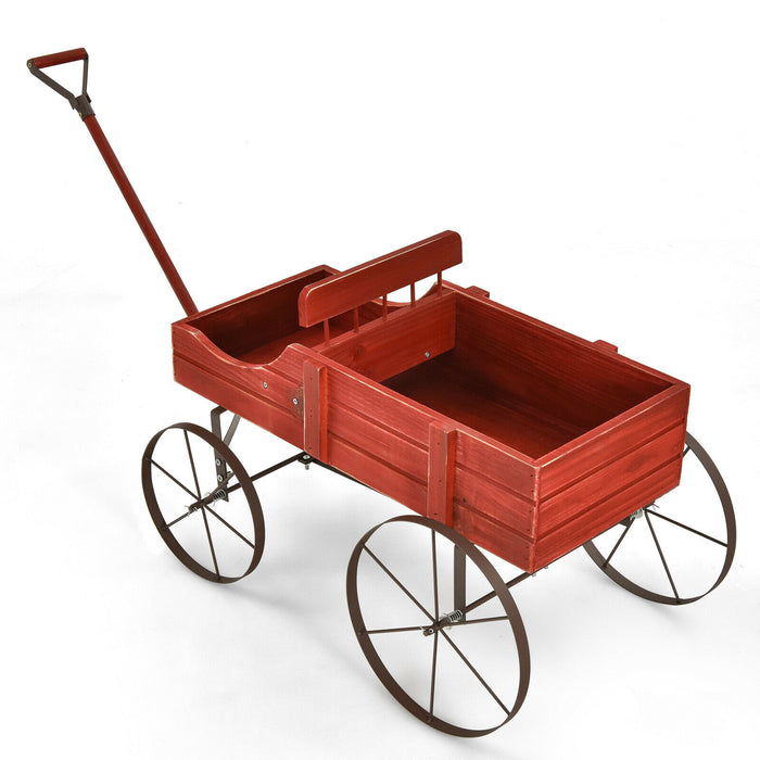 Welcome to a piece of timeless charm that brings a touch of rustic elegance to any setting. Our beautifully crafted wagon stand serves as a versatile home for your plants, a unique display for seasonal decor, or an enchanting plaything for the young ones. This wagon, with its rich hues and classic design, is perfect for enhancing gardens, patios, or indoor spaces with a quaint, old-world feel.