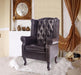 Covered in high-grade PU leather, the chair excels in durability and easiness to clean; a simple wipe with a damp cloth is all it takes to maintain its sophisticated appearance. The timeless scroll armrests cascade gently down from the back, merging style with comfort.