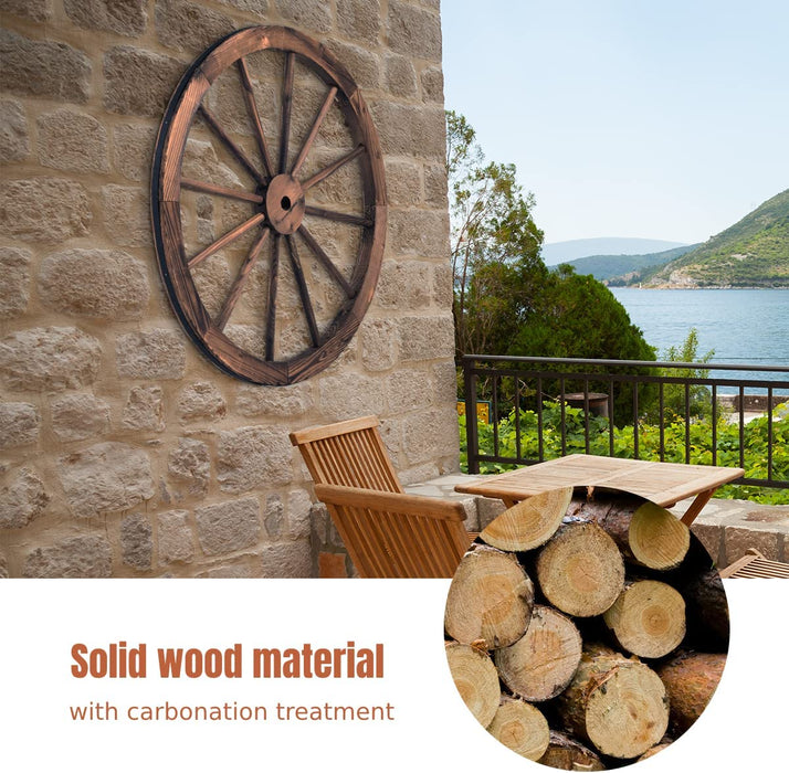 Weather-resistant and infused with a vintage aura, these wooden wheels serve as a striking decorative element. Whether it’s enhancing the character of your living room, invigorating a bar setting, or adding charisma to outdoor spaces, their adaptability knows no bounds.