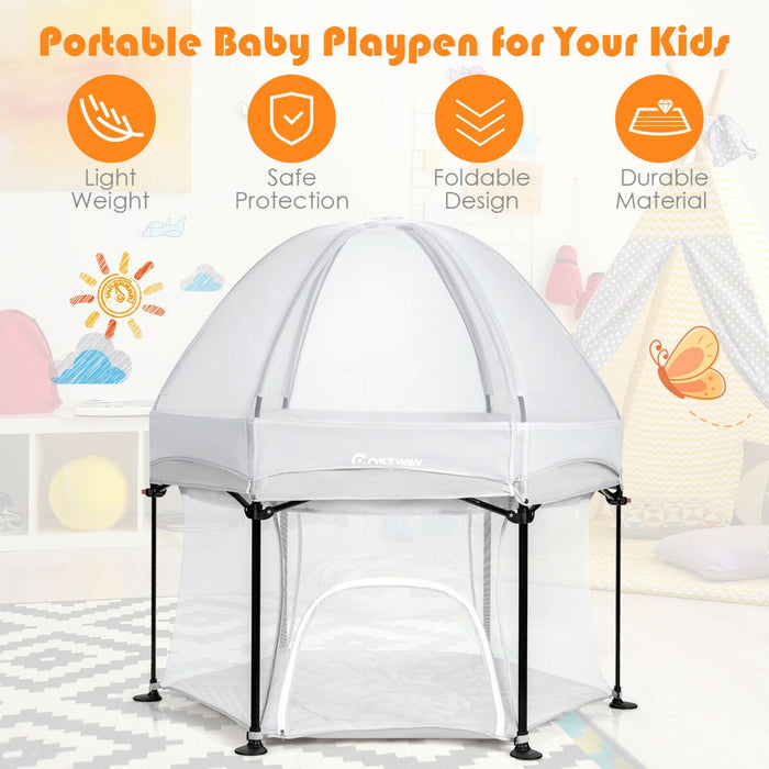Imagine a play space so wide it can comfortably hold both you and your child - that's what our Baby Haven offers. Its generous hexagonal design affords ample room, creating a versatile area where children can explore, and parents can join the fun. A thoughtful safety enclosure net, external zipper closure, and plush mattress ensure that while your child adventures in their play area, they remain protected and free from harm.