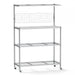 Colour: Silver Material: Metal Overall Dimensions: 107 x 46 x 157 cm (L x W x H) Size of Top Shelf: 107 x 25 cm (L x W) Size of Countertop: 107 x 45 cm (L x W) Height of Countertop: 103 cm Size of Each Bottom Shelf: 106 x 45 cm (L x W) Size of Hanging Net: 99 x 22 cm (L x H) Height off the Ground: 18 cm Adjustable Spacing: 250 mm Load Capacity of Top Shelf: 15 kg Load Capacity of Hanging Net: 10 kg Load Capacity of Each Hook: 5 kg Load Capacity of Countertop: 50 kg Load Capacity of Each Bottom Shelf: 50 kg Net Weight: 15.5 kg Package Includes: 1 x Bakers Rack 1 x Instruction Manual