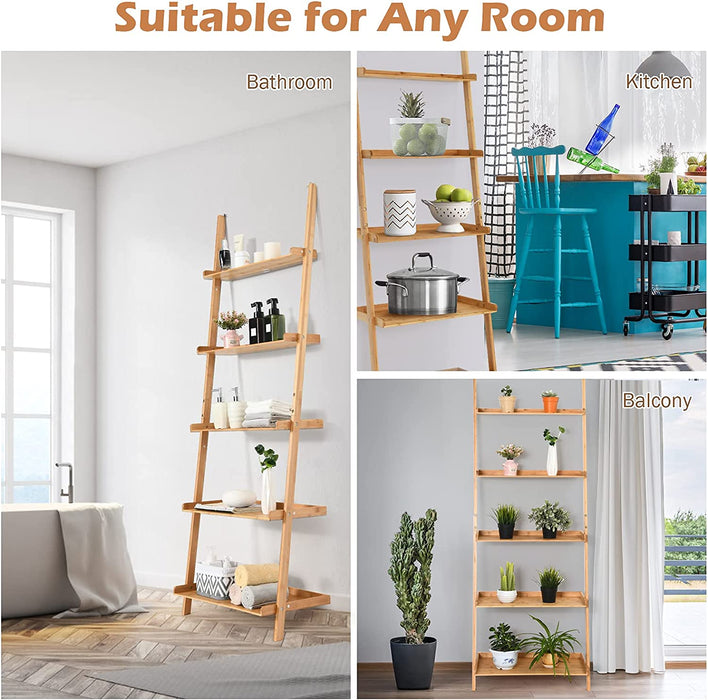 Crafted with high-quality bamboo, this ladder shelf promises a robust structure with a touch of nature. It thrives in its durability, offering both water resistance and a lightweight frame for effortless mobility. Coupled with anti-tipping hardware, it stands firmly against the wall to ensure maximum safety and stability in your sanctuary.