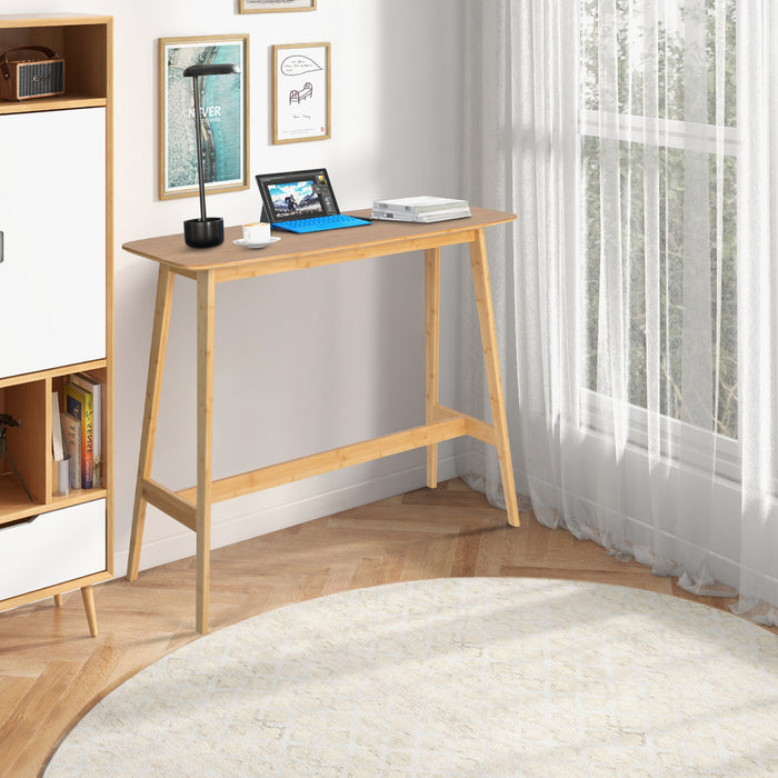 Treating spills and stains is effortless with this bar table's expertly finished surface. The bamboo material has received special treatment for a smooth, burr-free texture, and its waterproof coating makes cleaning as simple as a wipe with a soft cloth.