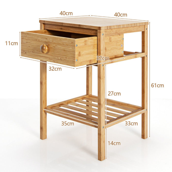 Crafted from premium bamboo, this nightstand celebrates the beauty and durability of natural materials. Standing on four sturdy legs, it delivers exceptional stability and a significant weight capacity. Its well-engineered structure allows the tabletop to support up to 30kg, with the drawer and shelf capable of holding up to 5kg each.