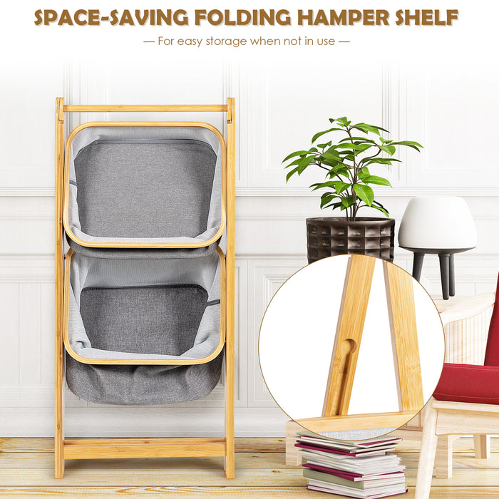 The beauty of this bamboo laundry hamper lies in its sophisticated A-frame structure, promoting durability and stability without compromising on style. Two spacious baskets provide ample room for all your storage needs, be it clothing, bathroom essentials, or children's toys. The open design invites ease of access, allowing you to find and retrieve items effortlessly.