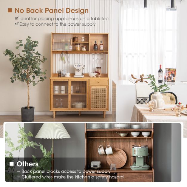 If you're seeking extra room without sacrificing style, our buffet cabinet's expansive countertop is your new ally. It allows you to prep, mix, or display with unparalleled ease. Whether you're crafting culinary delights or arranging your cherished coffee paraphernalia, you'll find the surface to be a generous companion to your daily ventures.