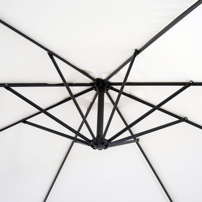 Our Cantilever Umbrella is designed with resilience in mind, boasting a substantial steel pole that provides a steadfast foundation. The durability of this umbrella is further enhanced by its eight supportive ribs and a sturdy cross base, delivering exceptional stability to create a serene and secure outdoor enclave.