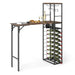 This kitchen island table is equipped with glass racks, bottle holders and a 2-tier storage shelf to ensure a neat and orderly space. Measuring 104 × 51 cm, the tabletop is ideal for intimate dining experiences or entertaining guests, boasting a foldable design for space-saving storage. Prioritizing safety, the wine bar table includes anti-toppling devices and anti-falling guardrails. Additionally, the stable metal frame with reinforced crossbars and adjustable foot pads promise stability. Blending functional design with rustic charm, the metal coffee bar with storage is a perfect complement for your home, whether placed in your home bar, kitchen, or dining area. Diversified Storage Solution: Organizing your home bar essentials with ease, this wine bar table features built-in glass racks that can hold up to 6 glasses and dedicated bottle holders for 18 bottles. The additional 2-tier storage shelf ensures other objects are easily accessible, keeping your space tidy and well-arranged. Generous and Foldable Tabletop: The home bar table boasts ample space with a spacious 104 × 51 cm tabletop, perfect for intimate meals with a loved one or for entertaining guests. When not in use, the clever foldable design allows you to easily reduce the kitchen island table’s footprint, making it an ideal choice for smaller spaces. Designed for Excellent Safety: Coming with 2 anti-toppling devices, this metal coffee bar can be securely attached to the wall. Moreover, the anti-falling guardrails on the shelves can prevent items from sliding off, offering peace of mind even in busy environments. Stability Always Comes First: The kitchen dining table is constructed with a heavy-duty metal frame, reinforced by crossbars for exceptional stability. With adjustable foot pads for enhanced stability on uneven floors, this foldable bar table stands stably, whether you are dining, serving, or displaying. Ideal Addition to Your Home: Thanks to its functional design and rustic aesthetic, this tall bar table is a versatile addition to your space. It is perfectly suited for your home bar, kitchen, or dining room, allowing you to enjoy a stylish dining experience or leisure time.