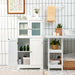 The quality MDF construction sprayed with waterproof paint ensures that this cabinet is resistant to moisture, solidifying its suitability for use in wet environments and guaranteeing unbeatable sturdiness for a lasting use. Plus, the cabinet doors boast frosted tempered glass doors that offer privacy for your personal items.