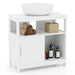 Are you looking for a versatile and innovative storage solution to enhance your bathroom sink area? Look no further! This vessel sink storage cabinet boasts a cleverly designed U-shaped cut-out that maximizes space efficiency and accommodates sink pipes. Featuring a practical cabinet top and an open compartment, it provides ample storage for all your essentials, from toiletries to bath towels. Besides, the convenient sliding doors with cut-out handles offer easy access to your items, while the durable construction ensures long-lasting use. Effortless to assemble and simple to clean, this cabinet combines functionality and style seamlessly, making it a must-have addition to any bathroom. If you are looking for such a product, do not hesitate to buy it! U-shaped Cut-out for Sink Pipe: the clever U-shaped cut-out, measuring 8.5 x 20 x 20 cm (W x D x H), is design to maximize space efficiency and accommodate your sink pipe. Note: please measure your sink size before purchasing. Partitioned Storage Space: This vessel sink storage cabinet comes with a practical cabinet top and an open compartment, offering large storage space to your toiletries, potted plants, aromatherapy items, bath towels, skincare products, and more. Convenient Sliding Door: The smooth-sliding doors feature convenient cut-out handles and guide rails, which allows you to effortlessly hide and retrieve your items from this under-sink vanity cabinet, enhancing both functionality and convenience. Selected Material and Durable Frame: This bathroom sink cupboard is made of high quality MDF with the surface painting treated, offering great durability. Besides, the stable supporting legs provide extra stability to the whole frame. Easy to Assemble and Clean: You can set up your vessel sink storage cabinet quickly with user-friendly instructions. Cleaning is a breeze, the smooth and water-proof surface allows you to wipe it with a damp cloth easily.