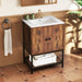 The package includes a floor cabinet and ceramic sink, providing ample storage with open and closed compartments. The integrated ceramic sink is easy to clean. Sturdy construction with soft-close hinges and a metal stand ensures durability. Designed for small spaces, this compact unit adds sophistication and functionality to your bathroom. Please note, additional items like backsplash, faucet, mirror, and drain are not included. Bullet Point: Bathroom Vanity Unit: What’s included: a floor cabinet, a sink, and handles. What’s NOT included: backsplash, faucet, mirror, and drain. The package comes with detailed instructions and numbered parts to simplify the installation process. Integrated Ceramic Sink: The sleek ceramic basin features an anti-overflow hole and smooth surface that is easy to clean and maintain. It is ready to use with a pre-drilled faucet hole (faucet not included). Spacious Storage Options: Equipped with both open and enclosed storage space, this floor cabinet with 2 doors and an open shelf is perfect for storing towels, toiletries, soaps, toilet paper, skin care product, and other essentials. Sturdy and Stylish Design: Constructed for durability, this bathroom storage cabinet is crafted with soft close hinges and a sturdy metal stand. The robust design ensures longevity, while the clean lines and modern look bring a touch of sophistication to your space. Compact and Versatile Addition: This under sink floor cabinet with sink offers essential storage without taking up too much space, making it a space-saving storage solution for small bathrooms.