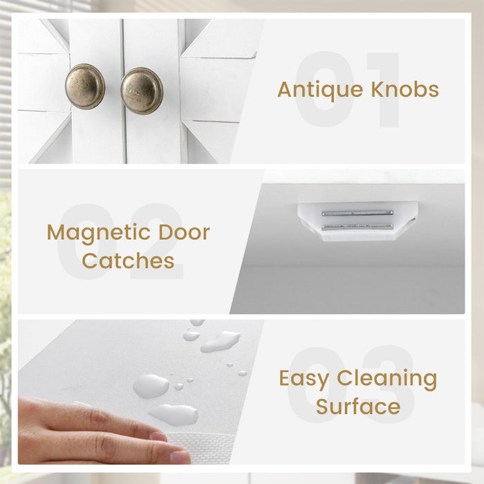 Color: White Material: MDF, metal Product dimensions: 43.18 x 20.32 x 53.34 cm (L x W x H) Net weight: 5.9 kg Package includes: 1 x Bathroom wall cabinet 1 x Instruction