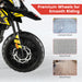 Safety is our top priority, which is why this ride-on motorcycle boasts a durable frame and a stable triangular wheel arrangement – including a pair of large wheels and training wheels for added equilibrium. The enhanced spring suspension system offers a safe and silky-smooth ride over various surfaces, while the full seat and footrest area provide extra comfort and support during longer excursions.