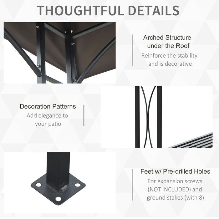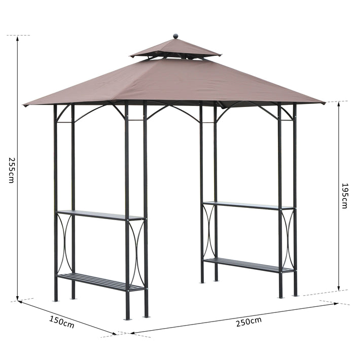 With an overall size of 250L x 150W x 255H cm, this pavilion is designed to offer plenty of room without dominating your yard. The eaves height of 195cm ensures comfortable headroom for guests of all statures. To make your hosting duties a breeze, each of the side shelves has been crafted to hold up to 25kg, providing solid support for your cooking essentials.