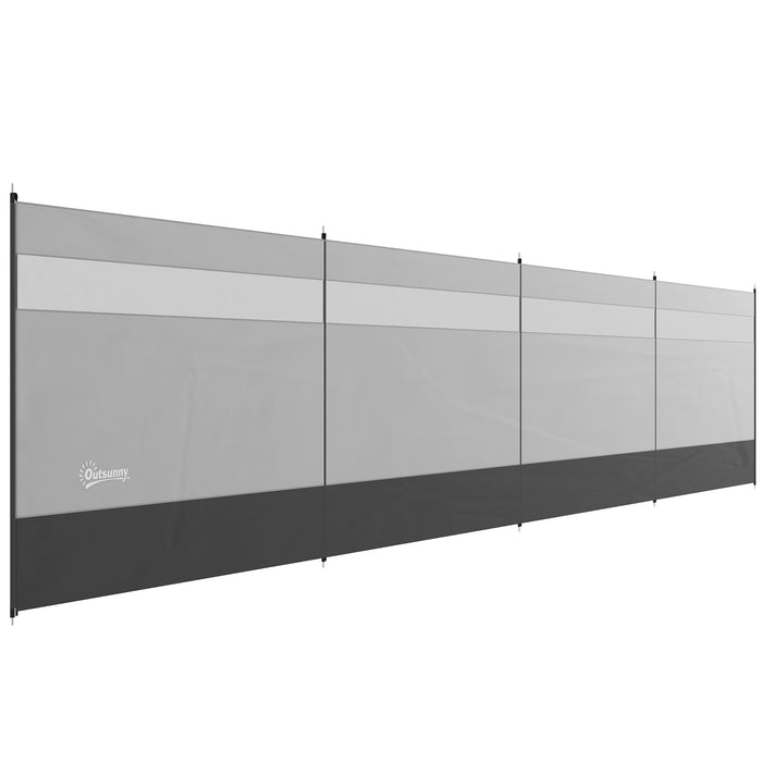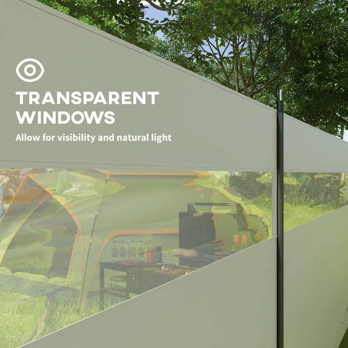 Beach Camping Windbreaker with Transparent Viewing Panels - Durable Grey Windshield with Carry Bag and Steel Support Poles, 725 x 140 cm - Ideal for Caravans, Campervans & Outdoor Adventurers