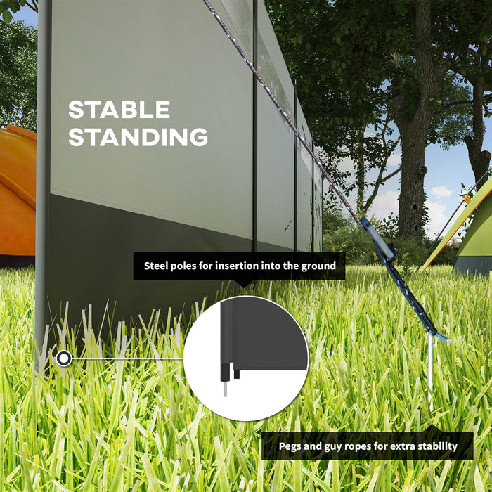 This marvel of design spans an impressive 725 cm in length and stands 140 cm high, while the folded dimensions are a mere 58L x 13W x 13H cm, ensuring that your shelter's presence is bold when in use and minimal when stored. Crafted from high-quality polyester fabric supported by solid steel, this wall stands the test of time and wear.