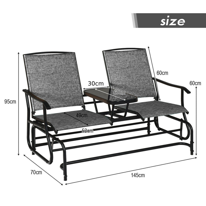 Step into the embrace of comfort and modern elegance with our exclusive Double Rocking Chair, an indispensable addition to enhance your outdoor lounging experience. Beautifully crafted for moments of leisure and conversation, this glider chair is designed to accommodate two people, making it a perfect retreat to enjoy with a loved one.
