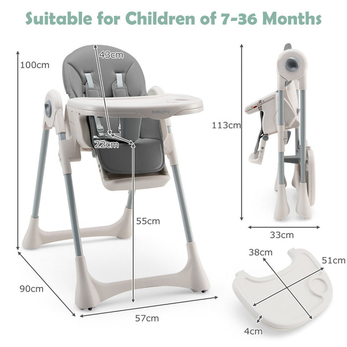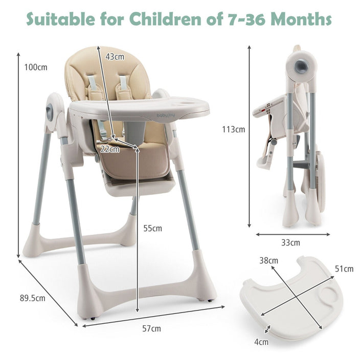 Our mission to facilitate convenience for parents is reflected in the highchair's one-touch folding mechanism. This feature compresses the highchair into a compact size ideal for storage or travel, effortlessly fitting into corners or car trunks. The thoughtful design includes a space to stow the tray when not in use, eliminating any storage woes and allowing for an organized dining area.