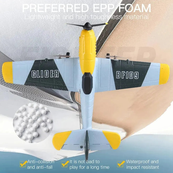 This airborne marvel, referred to as the BF109 RC Plane, is a strikingly majestic piece of craftsmanship. The innovative and effective construction ensures an easy and smooth flight experience. It's designed primarily for beginners, allowing them to explore the thrill of flight without many complexities. Bedroom pilots, brace yourselves, because you're just about to take off to a whole new level!