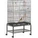 Constructed with a strong steel frame, this sanctuary offers security and long-lasting durability. The cage is mounted on four smooth-rolling wheels, enabling effortless relocation to brighten up any corner of your home. The inclusion of two locking brakes ensures stability, providing a safe and serene home for the birds to flourish.