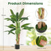 Experience the Beauty of Nature without the Maintenance Hassle! Our 63"/160 cm tall bird of paradise artificial plant features 18 large faux banana leaves, complemented with simulated trunks, realistic barks and mosses, exuding natural beauty and charm to your living space. Crafted from premium polyester leaves, the fake tree is not only long-lasting but also free from any unpleasant odors, allowing you to enjoy the beauty of greenery without the usual upkeep. The included sturdy cement pot provides stability and prevents accidental toppling, giving you peace of mind, especially in households with children or pets. Whether adorning your living room, office, or commercial area, it effortlessly brings the tropical charm to any indoor setting. Bullet Point:Vivid and Natural Appearance: This 63"/160 cm tall artificial plant boasts 18 large lifelike leaves with vibrant hues and realistic textures, which are designed to replicate the beauty of banana leaves. Additionally, it features simulated trunks and realistic moss, making the tree more natural.High-Quality & Maintenance-Free Material: The faux leaves are crafted of premium polyester fabric, which is not only non-odor and non-allergic for safety but also crack-resistant and built to last. Moreover, it requires no watering, sunlight, fertilizer, or pruning, keeping evergreen.Stable and Reliable Structure: The fake tropical palm tree is supported by a stable flowerpot filled with cement, preventing children or pets from knocking it down easily. Alternatively, you can place it in a larger decorative pot for an even more aesthetically pleasing look.Versatile Decoration: Whether adorning a cozy living room, a welcoming front door porch, a professional office space, or a trendy cafe shop, this versatile artificial banana leaf tree effortlessly elevates any indoor environment with its lifelike charm.Require No Assembly: The tree may slightly deform during transportation, please arrange the branches to restore its original shape after unpacking, and then adjust the leaves for a fuller shape. Additionally, the moss comes separately packaged for even placement on pot top.