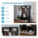 The essence of this furniture piece lies in its abundant storage capabilities. Equipped with five two-prong hooks, it provides ample space to hang your coats, scarves and hats. Below, you'll find two easily accessible open shelves, perfect for storing your daily essentials or decorative items. For items in need of concealment, the single enclosed cabinet is aided by smooth pneumatic rods for effortless opening and secure closing, safeguarded by a magnetic catch.