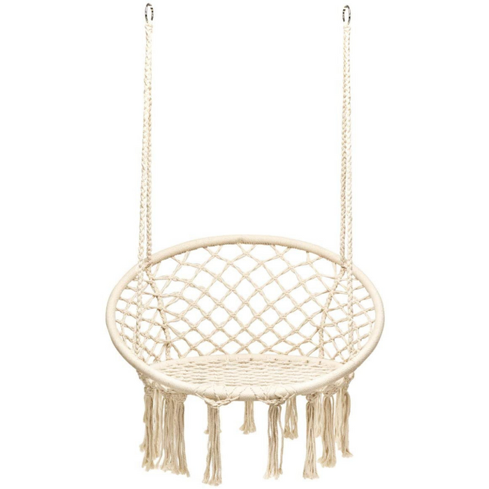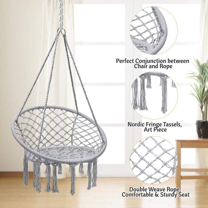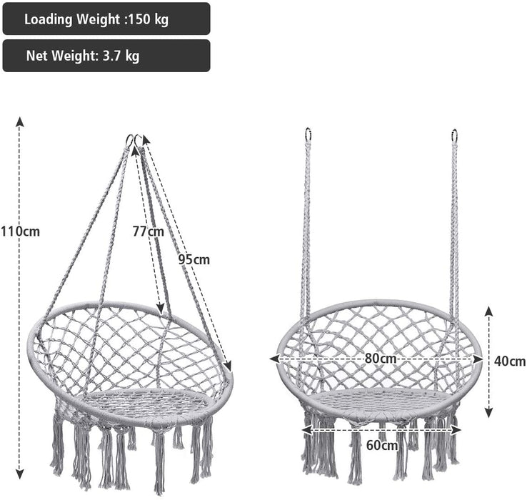 Adorn your home with a touch of sophistication; our bohemian-inspired swing chair is crafted with attention to detail. The intricate macrame weave adds an elegant aesthetic, while the soft and breathable cotton rope ensures you stay comfortable during your lounging sessions. The chic tassel fringe at the base injects a bohemian flair, transforming any space into a stylish haven.