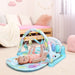 Crafted to ignite every facet of your baby's development, this mat does more than simply entertain. Interactive elements, such as soothing music, vibrant lights, and enchanting cartoon motifs, work in harmony to hone your little one's visual and auditory senses. Our selection of rattle pendants is not just cute; they're cognitive catalysts, prompting your baby to make leaps in understanding their surroundings. Movement's a must, as the kick-and-play feature of the piano encourages joyful squirms and kicks, aiding in the strengthening of tiny muscles and coordination.