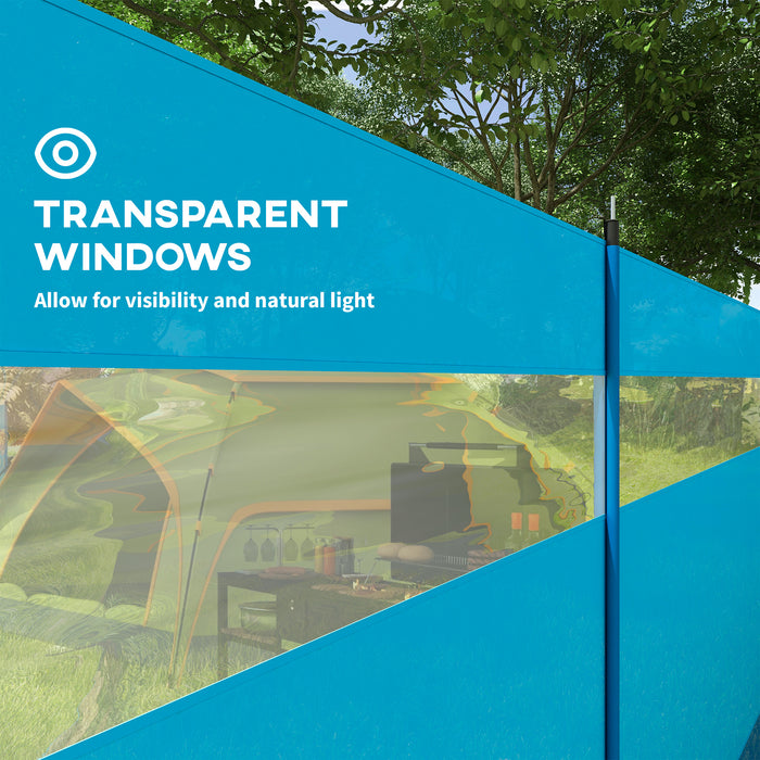 Blue Beach Camping Windbreaker with Clear Windows - Includes Carry Bag & Durable Steel Poles, 725 x 140 cm - Ideal for Caravan, Campervan & Outdoor Privacy