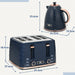Complementing the kettle is the versatile toaster, equipped with four wide slots and seven browning settings, giving you complete control over the crispness of your toast. Whether you prefer it lightly golden or deeply toasted, the intuitive controls cater to all your preferences. In addition, the toaster includes convenient defrost, reheat, and cancel functions, along with an automatic centering feature for consistently even toasting across all slices.