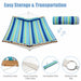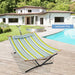 Heading out for a camping trip, or just want to save space? This hammock can be neatly folded, transforming into a compact bundle ready to accompany you on your adventures or tucked away discreetly. Its delightful mix of hues and portable nature make it a chic and practical choice for on-the-go relaxation.