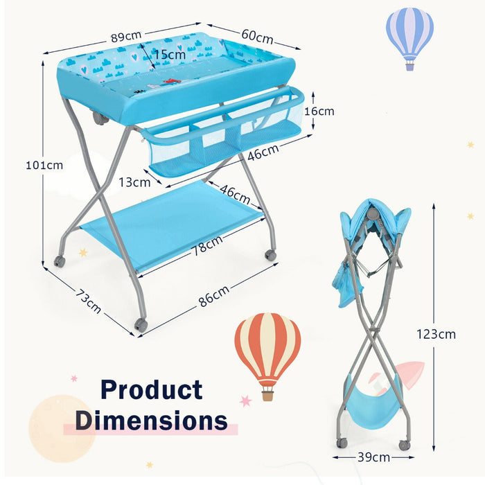 Adorned in a serene blue, constructed with breathable, durable Oxford cloth, and supported by a steel frame, our Baby Care Station is as stylish as it is sturdy. The overall dimensions, measuring 93 cm in length, 73 cm in width, and 103 cm in height, make it a perfect fit for most room sizes, while the folding size ensures it's discreet when not in use. With a net weight of just 8 kg and a convenient carrying capacity on the tabletop and shelf, this product is a testament to the blend of light-weight design and heavy-duty capabilities. Specially tailored for infants aged 0-12 months, the care station comes complete with the main unit and an easy-to-understand instruction manual.