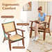 This living room chair features a sturdy bamboo wood frame, reinforced with crossbars and anti-slip foot pads, ensuring stability and support for up to 150 kg. Its ergonomic design showcases a 105° inclined backrest with a wide and contoured seat, complemented by cozy armrests for peak relaxation. Crafted with hand-woven PE rattan, this wooden armchair not only provides a breathable feel but also adds a chic bohemian touch to your decoration. With a seat height of 37 cm, this versatile chair serves as the perfect accent, lounge, or reading chair, safely designed with rounded corners and hidden screws. Selected Rattan: This mid-century chair is meticulously crafted with hand-woven PE rattan, providing not only a breathable seating experience but also adding a sophisticated, stylish bohemian touch to your living space. Bamboo Wood: Constructed with a solid bamboo wood frame, reinforced with sturdy crossbars and equipped with anti-slip foot pads, this accent chair offers reliable and stable support capable of holding up to 150 kg. Ergonomic Comfort: The 105° inclined backrest, wide seat and cozy armrests of this lounge chair are thoughtfully designed to provide ergonomic support, ensuring you can unwind in comfort. Versatile Seating: With a seat height of 37 cm, this modern armchair serves multiple purposes. It is perfect as an accent chair in your living room, a lounge chair in your bedroom or a reading chair in your study room. Safety & Aesthetics: This side-sitting chair features rounded corners and hidden screws, which not only enhance the aesthetic appeal but also ensure your safety. Plus, the easy assembly saves your precious time.
