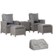- Comprises of two reclining armchairs, two footstools and a functional coffee table with cooler