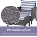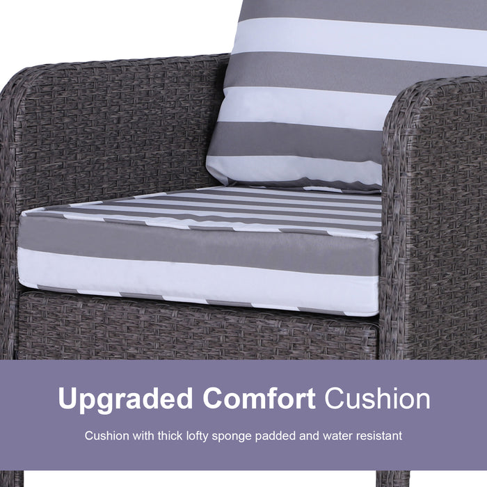 The set presents itself in a sophisticated palette of Dark Grey, Grey, and White Stripes, a neutral yet charming color scheme that easily integrates into any outdoor decor. Constructed with high-grade materials such as PE Rattan, steel, and polyester, this set promises to deliver not only on aesthetics but also on endurance and comfort to stand the test of time.