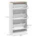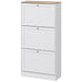 Equipped with three dual-compartment doors, this exquisite shoe cabinet gently cradles up to 18 pairs of your favorite shoes. Each shelf nestled within is fully adjustable, providing a tailor-fit home for sneakers, heels, and boots alike. Atop this cabinet lies a serene stage perfect for showcasing cherished mementos, from timeless photographs to your favorite vase.