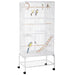 Constructed from robust steel, the birdcage promises longevity and a stable environment for the birds to flourish. Mobility is a breeze with four caster wheels, allowing relocation to the ideal spot in your home or outdoors, with two lockable wheels ensuring stability whenever needed.